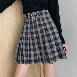 Aラインスカート サマーハイウェストウェストプリーツ格子柄 夏物 タオタオイ90082062678