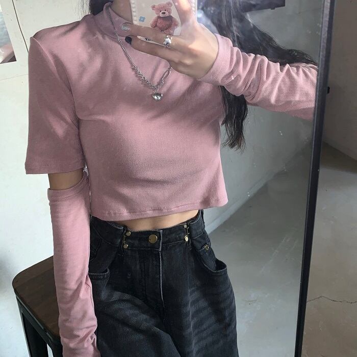 スプリングソリッド カラートップス 春物 Tシャツ ソリッドカラー タオタオイ82473037083