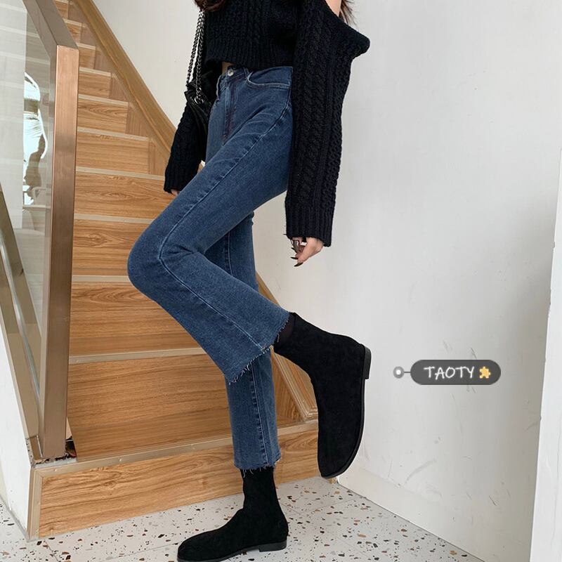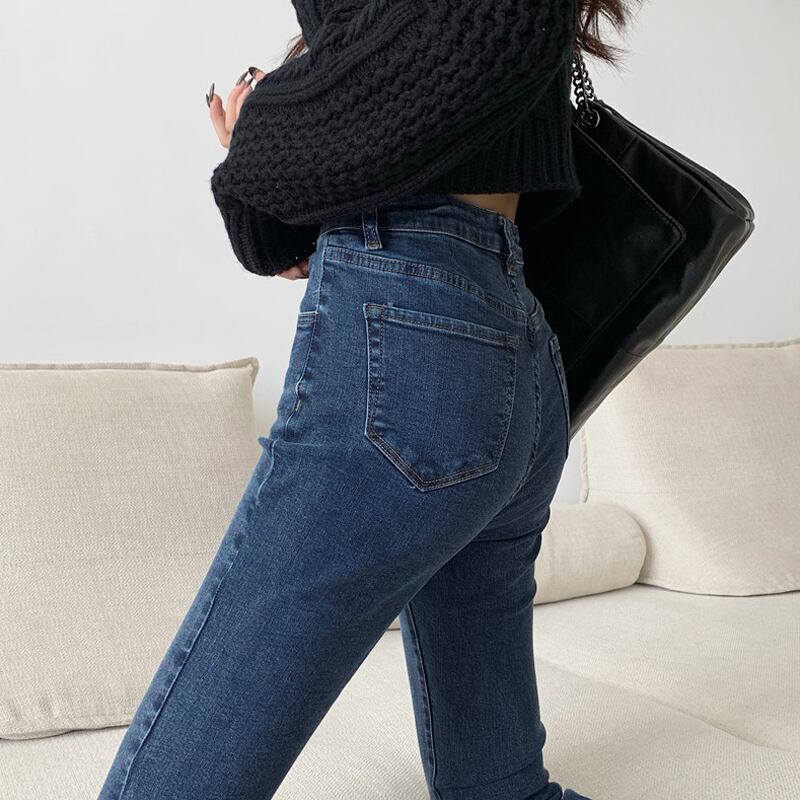 スプリングオータムハイウェストジーンズ スリムパンツ 薄手 レッド 春物 秋物 タオタオイ26539227613