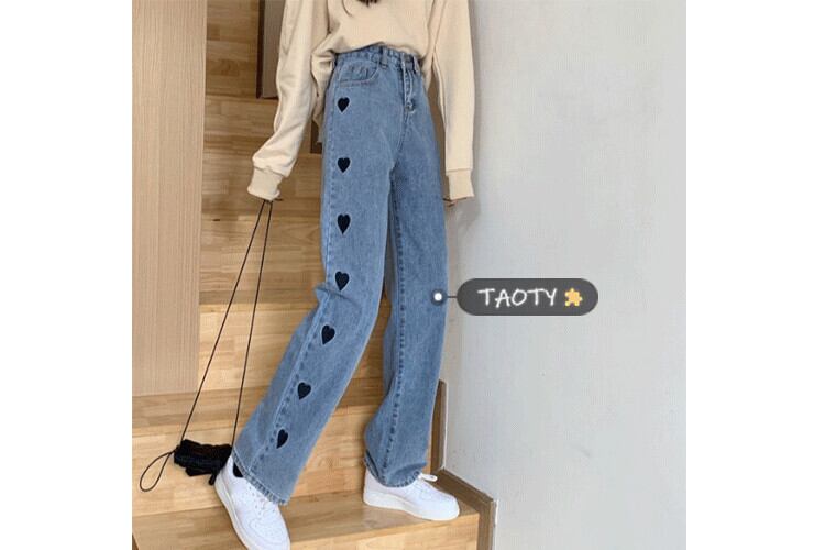 パンツ スプリングオータムハイウェスト薄手ジーンズ ルーズ レッド 春物 秋物 タオタオイ38989272591