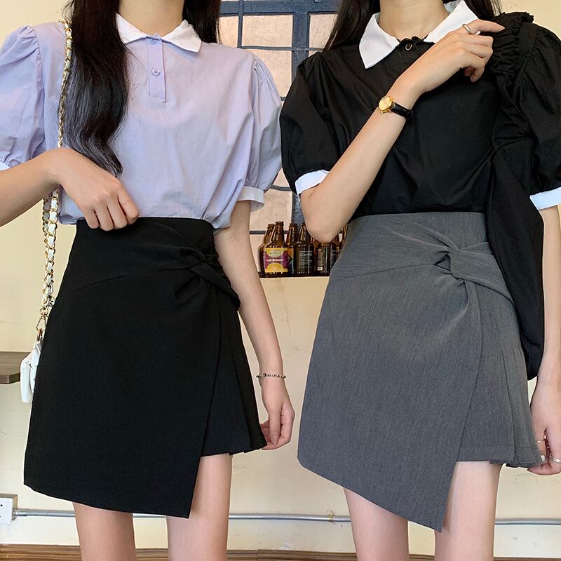 スプリングオータムブラックプリーツスカート ハイウェストウェストAラインショート 春物 秋物 タオタオイ46634656113
