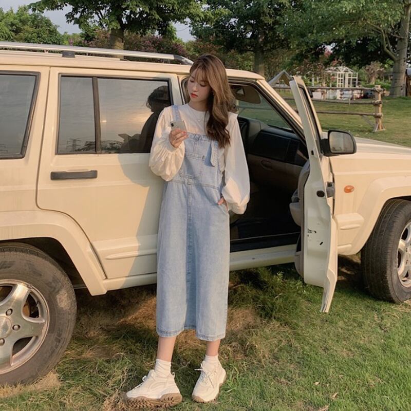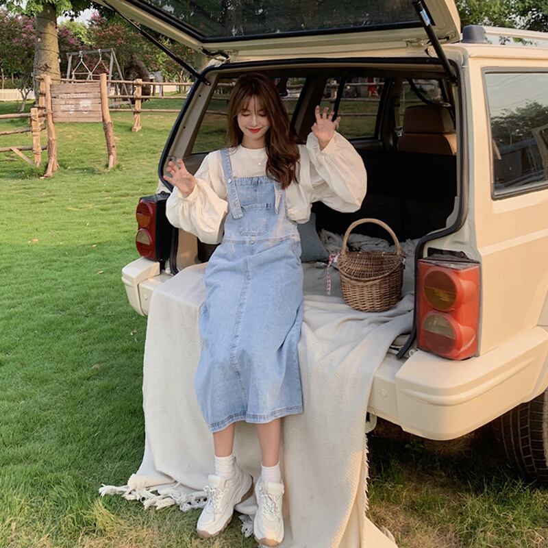 色:ワンピースアプリコットシャツ,デニムサスペンダースカートワンピース