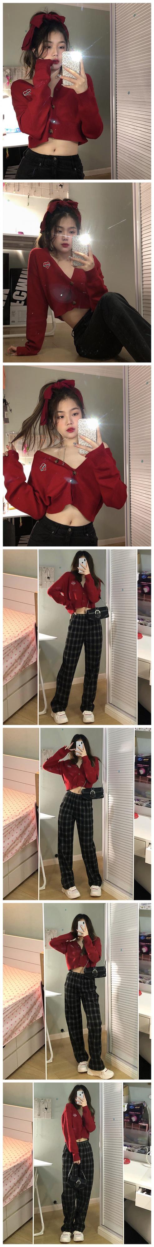 レッドスプリングショートクロップドセーター スタンダード格子柄カジュアルパンツ レトロ 春物 タオタオイ14120107613