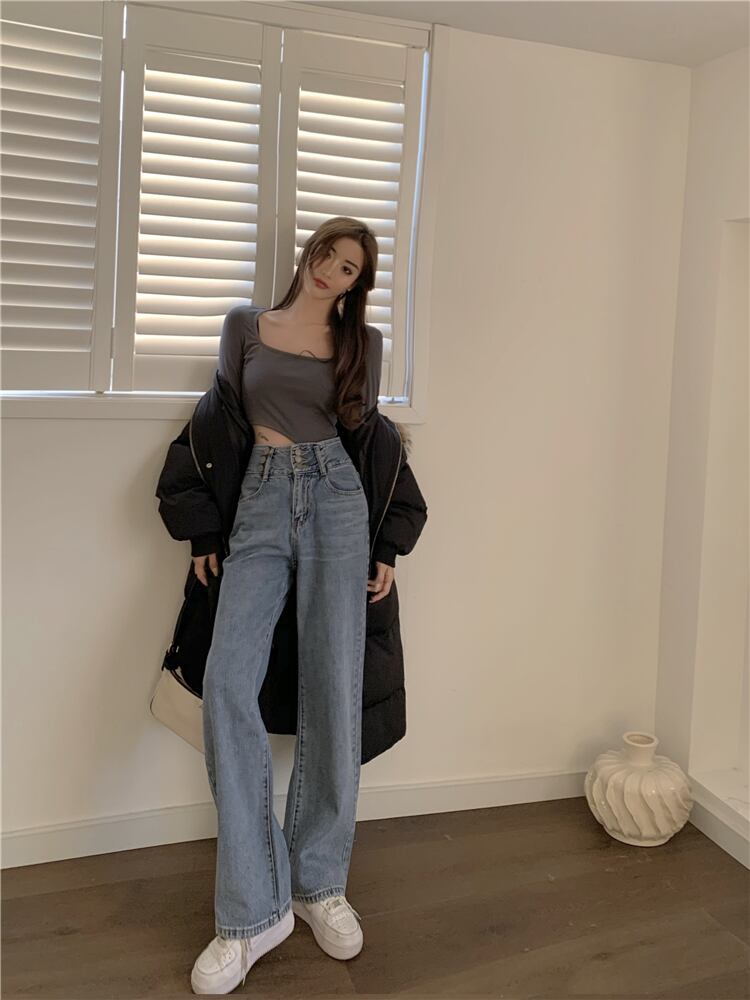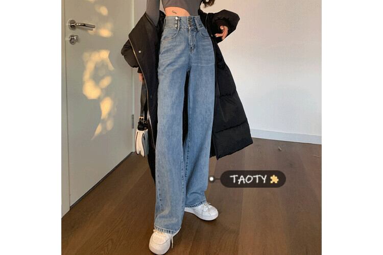スプリングスタンダードハイウェストジーンズ ルーズパンツ 薄手 レトロ 春物 タオタオイ34668328600
