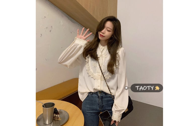 スプリングオータムスタイルスタンダードシャツ シフォンスリーブトップス レトロ 春物 秋物 タオタオイ18023677908