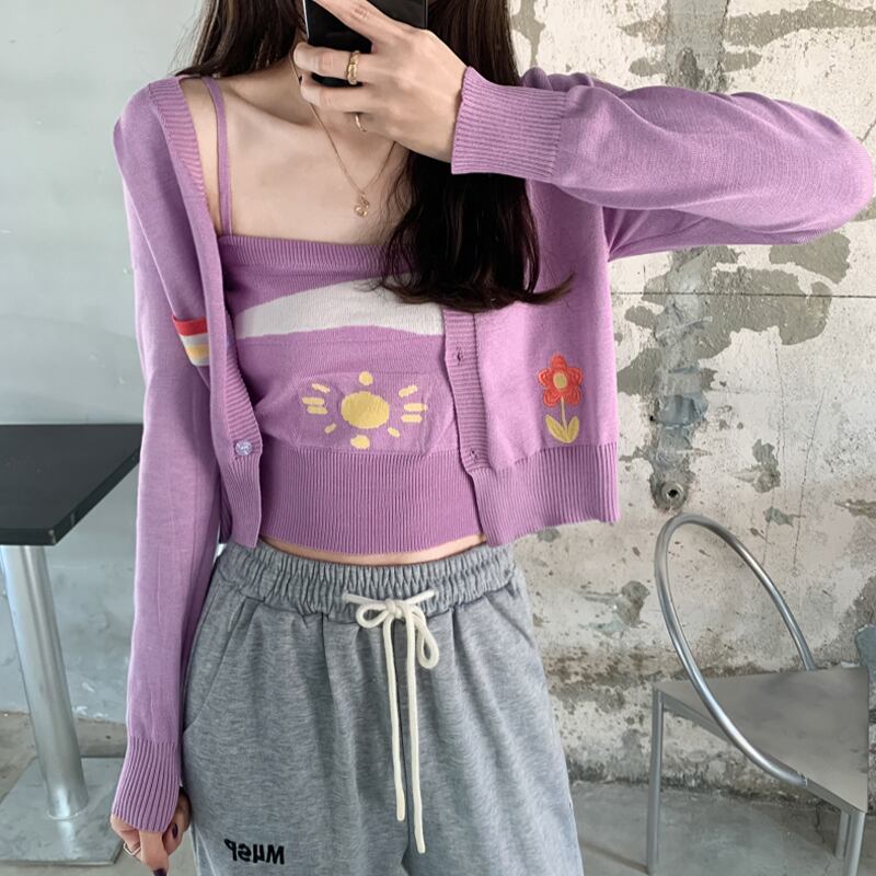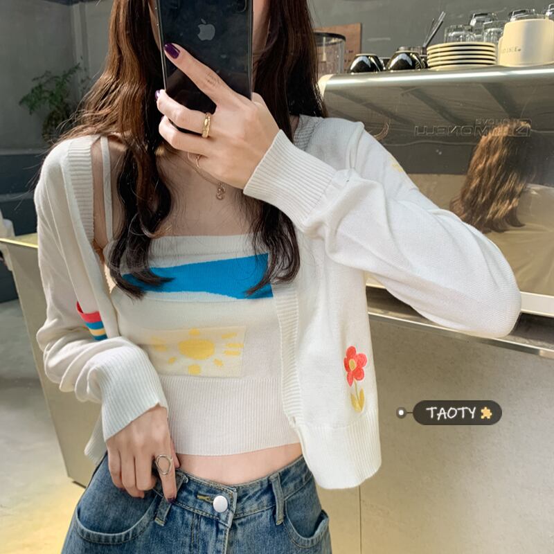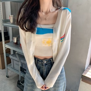 スプリングVネックブラウス カーディガンショートニットセーター 春物 タオタオイ58372626428