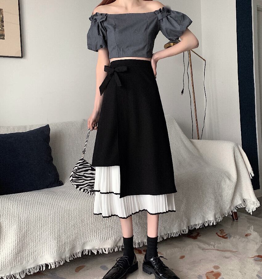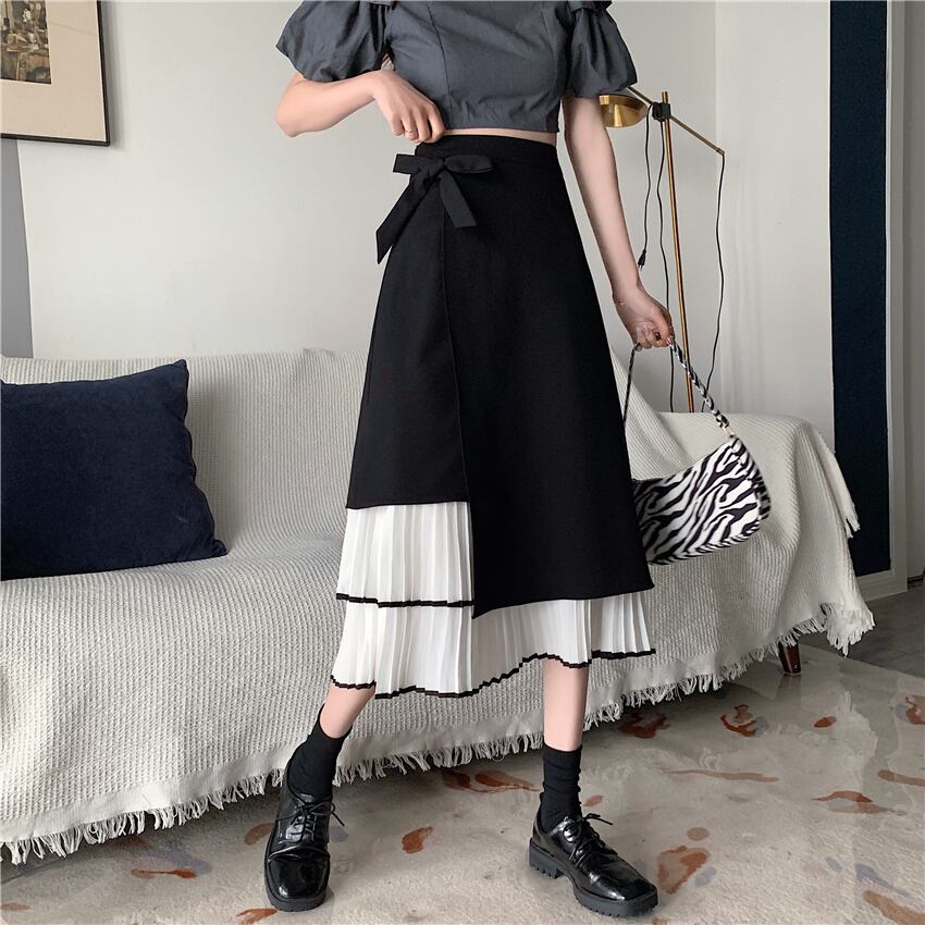 スカート プリーツスプリングオータムハイウェストウェストAラインロング 春物 秋物 タオタオイ96432928190