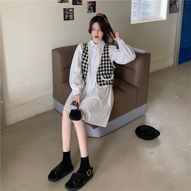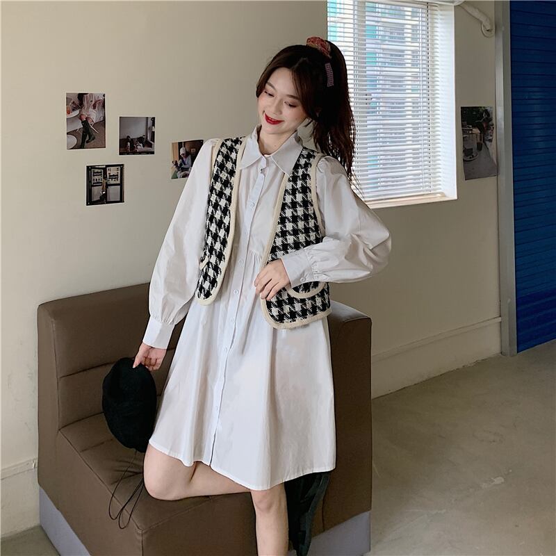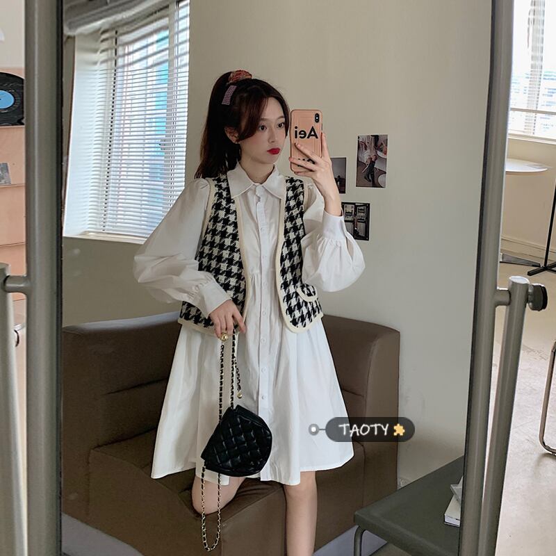 スプリングオータムホワイトドレス シャツ スカート スタンダード レトロ 春物 秋物 タオタオイ35369149977