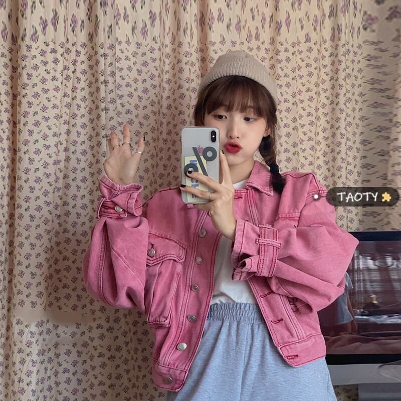 ジャケット スプリングレッドショートルーズトップス ロング ストリート 春物 タオタオイ82390355244