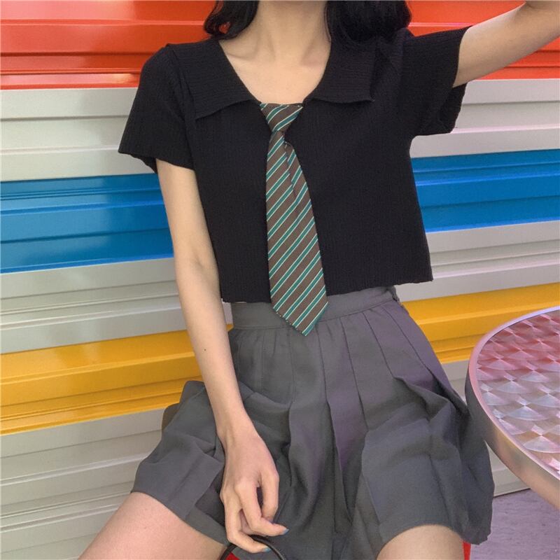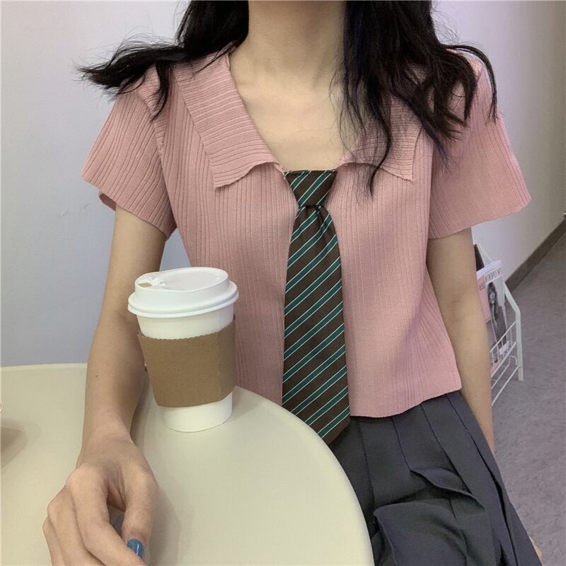 ショートニットセーター レディーススプリングスタイルスタンダードブラック薄手トップス レトロ 春物 タオタオイ19350644098