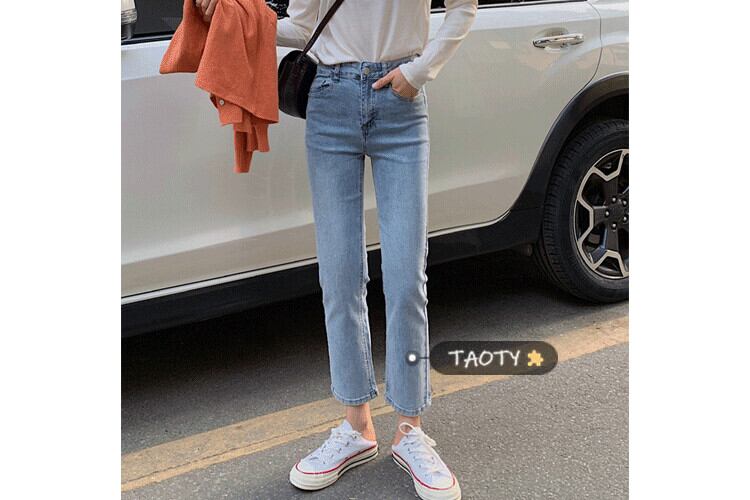 ジーンズ スプリングオータムハイウェストウェストスリムパンツ レッド 春物 秋物 タオタオイ71659964525