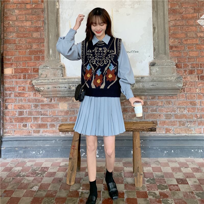 色:青いドレスワンピース,ワンピースアプリコットドレス,ブルーベストワンピース,アプリコットベストワンピース