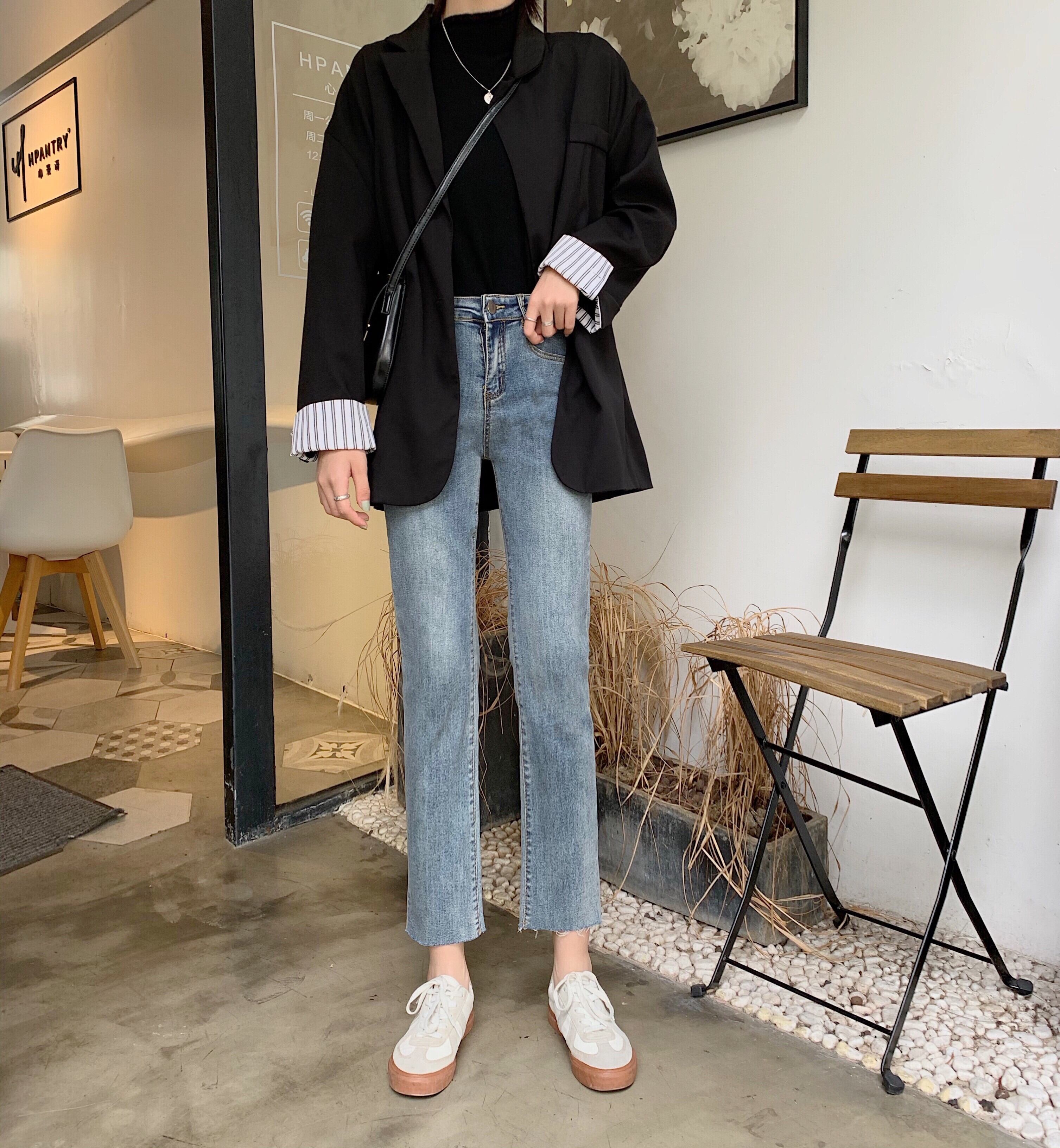 ルーズパンツ スプリングオータムスタイルハイウェストウェストジーンズ クロップド 春物 秋物 タオタオイ43306530918