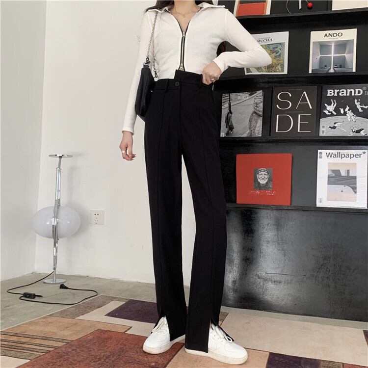 パンツ レディーススプリングブラックハイウェスト薄手ルーズ 春物 タオタオイ31921766159