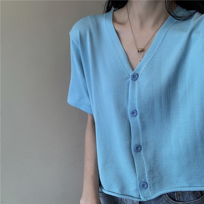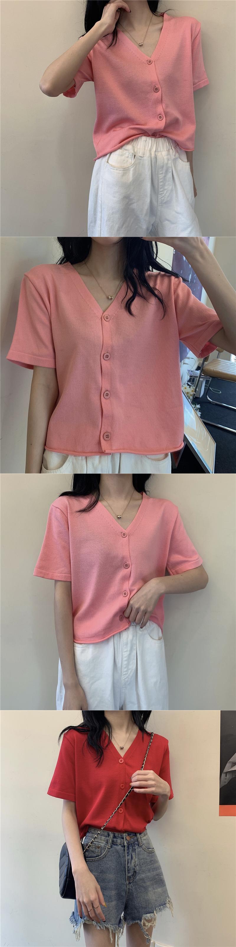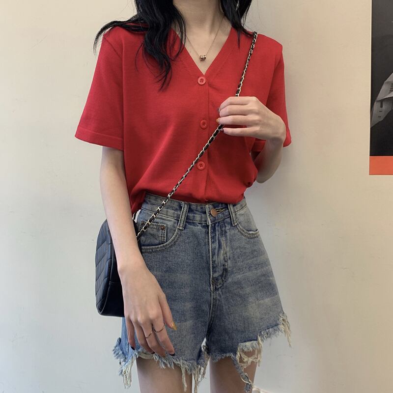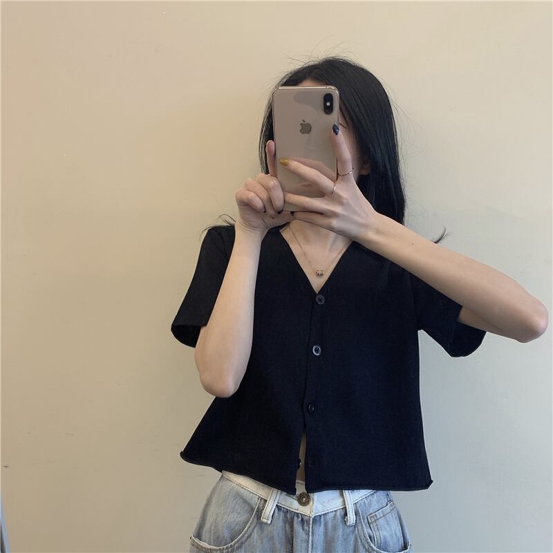 スプリングニット薄手Vネックショートシャツ カーディガン 春物 タオタオイ92257781582