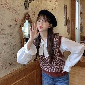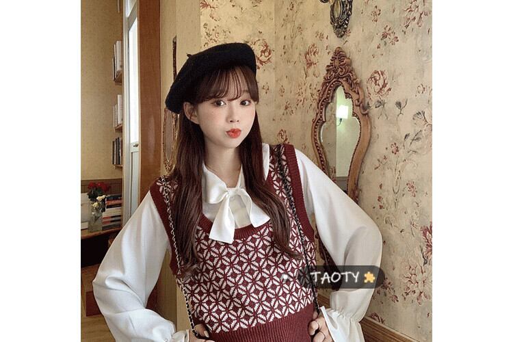 色:赤レンガのウールのベストシングルピース,白いシャツのワンピース