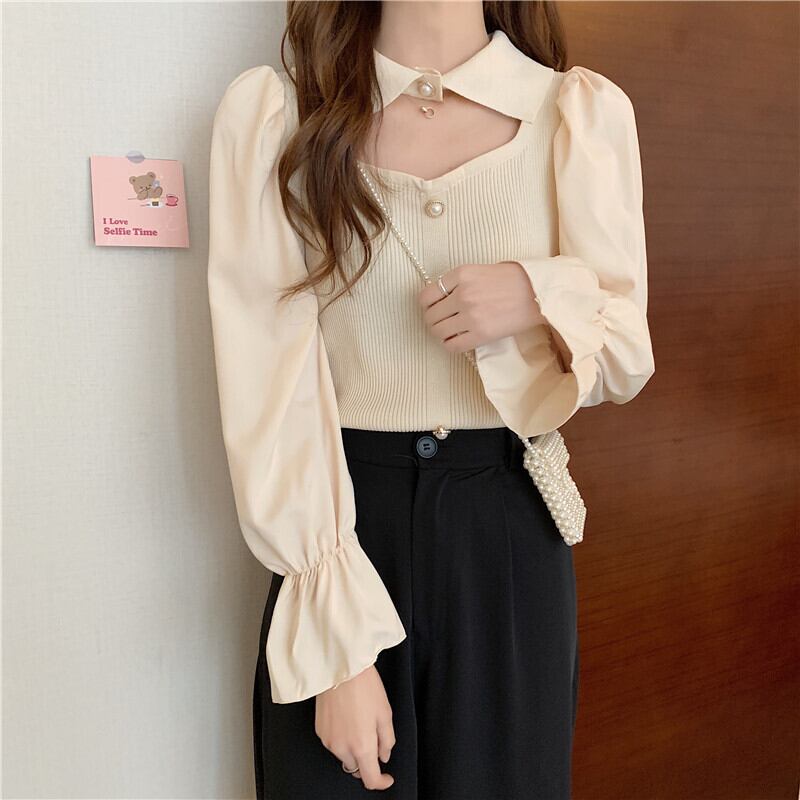 スリーブシャツ レディーススプリングオータムスタンダードスタイル長袖トップス ロング レトロ 春物 秋物 タオタオイ10896667939