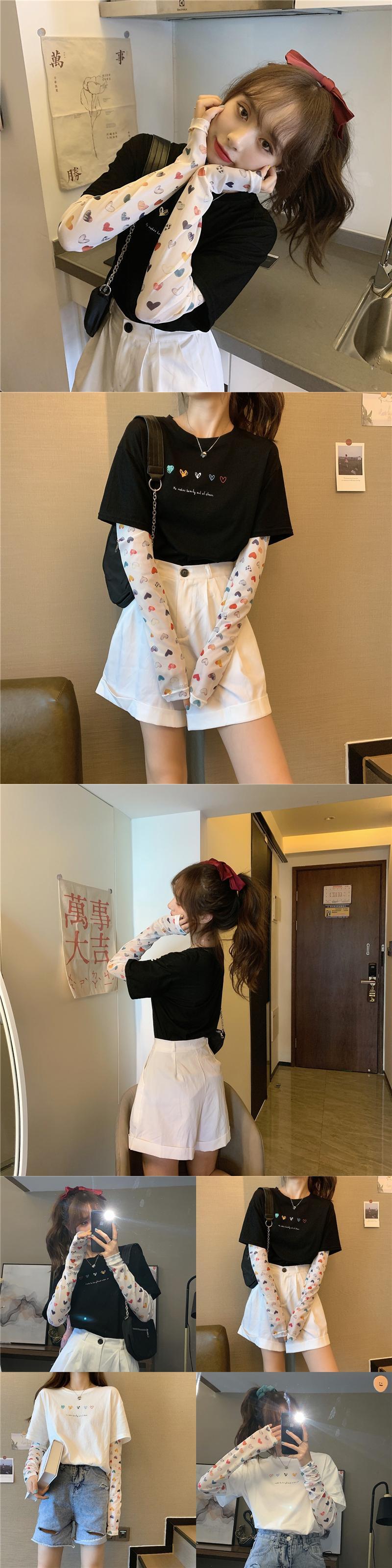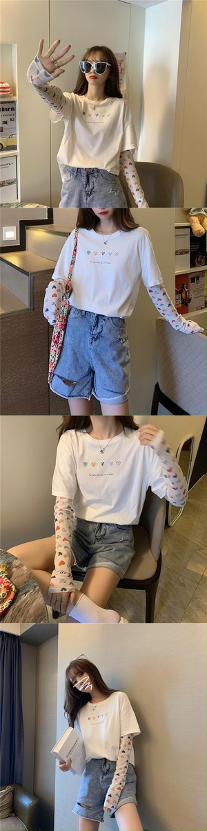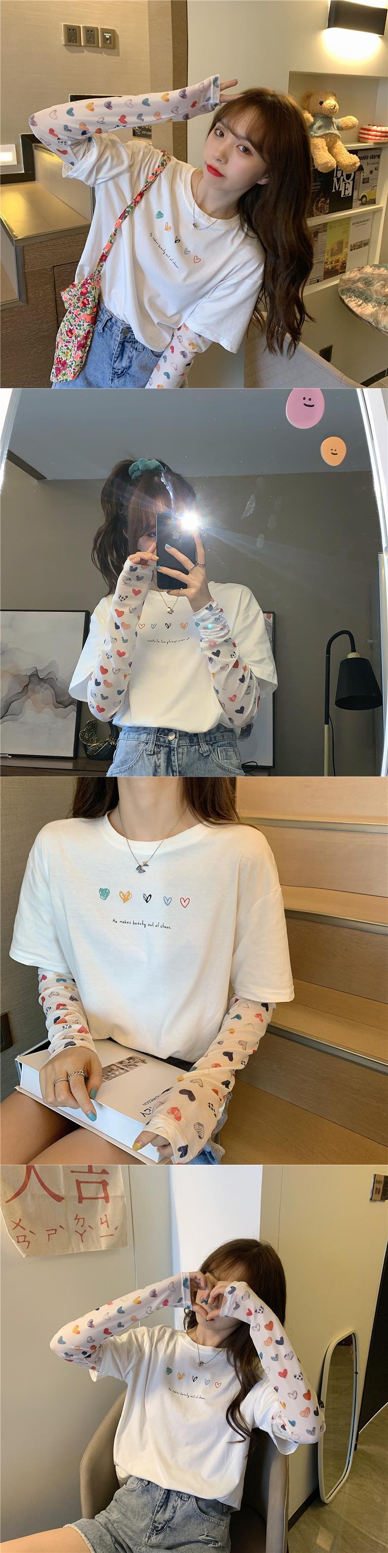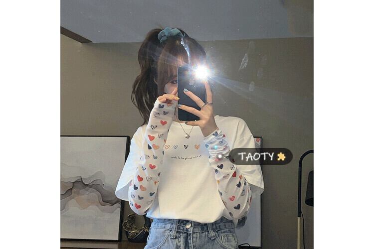 スプリングプリントTシャツ ルーズホワイトトップス ロング 春物 タオタオイ88598471664