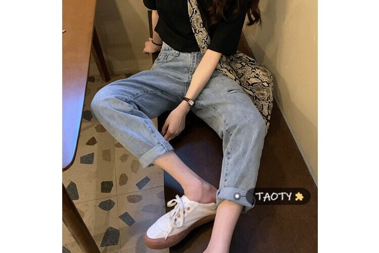 パンツ スプリングオータムハイウェストウェストジーンズ ルーズ 春物 秋物 タオタオイ84836450938