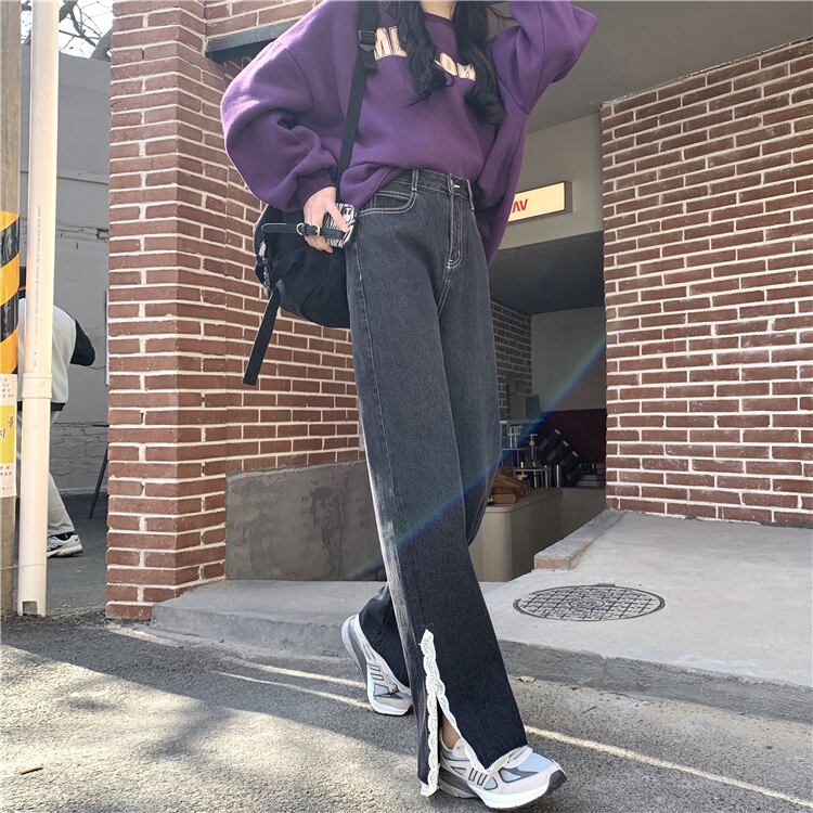 ジーンズ スプリングオータムワイドレッグパンツ ハイウェストウェストルーズ 春物 秋物 ワイドパンツ タオタオイ46315242791