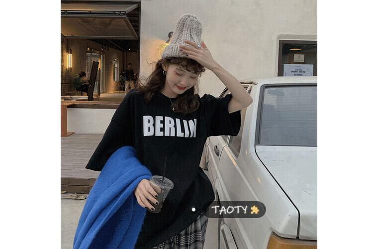 ブラックTシャツ シャツ サマールーズレッドカジュアルスタイルトップス 夏物 タオタオイ9857658436