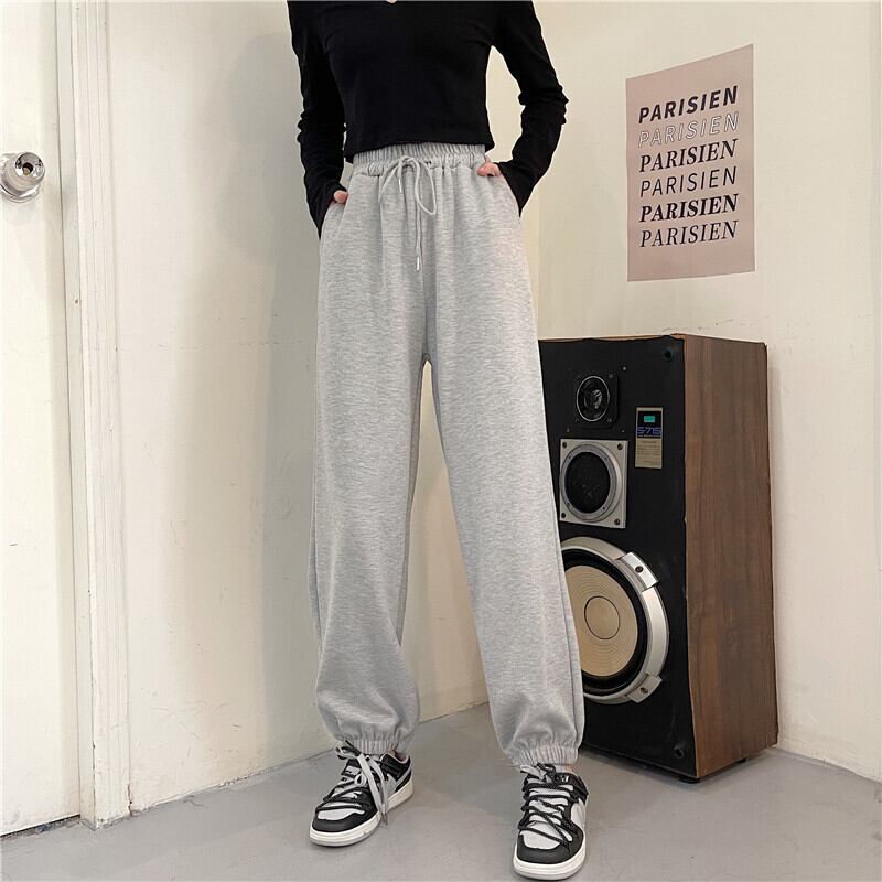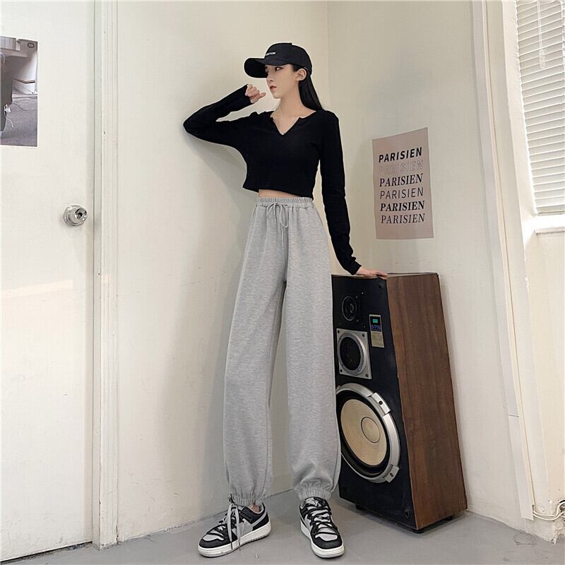 グレーパンツ スプリングオータムルーズハイウェストウェストカジュアル 春物 秋物 タオタオイ25867462290