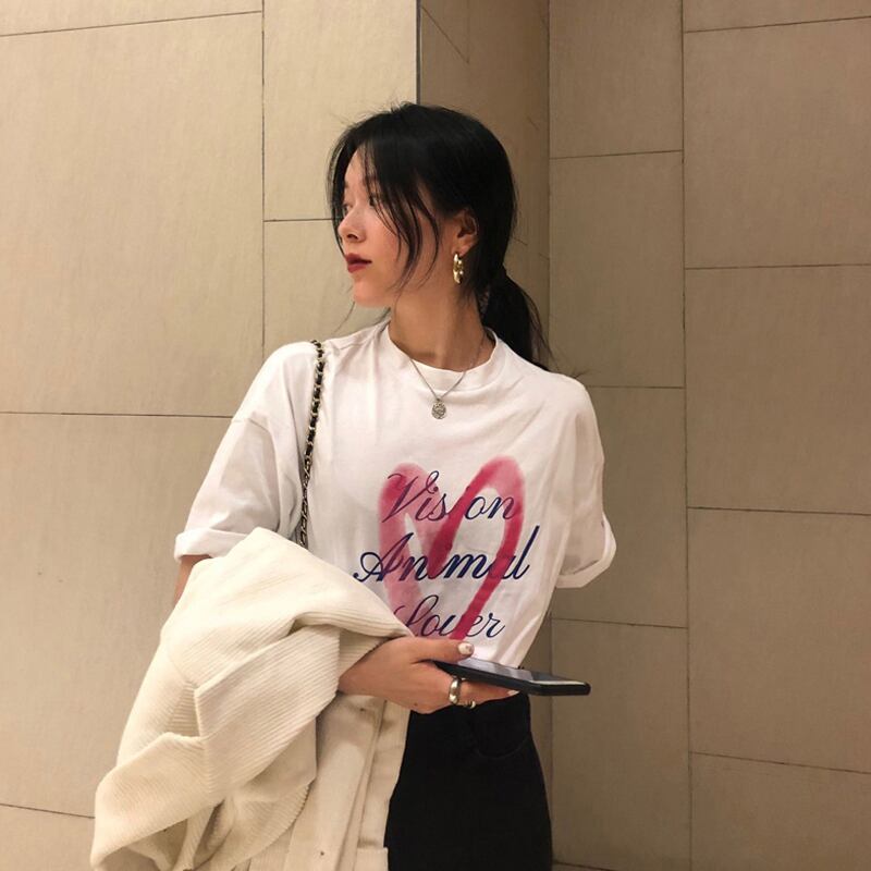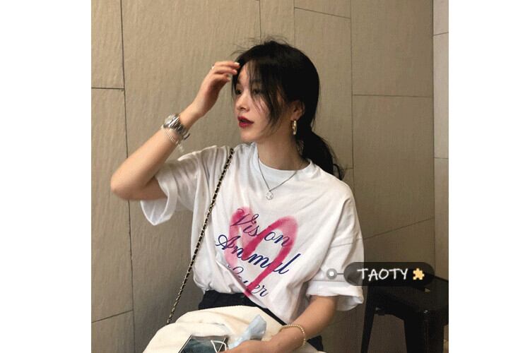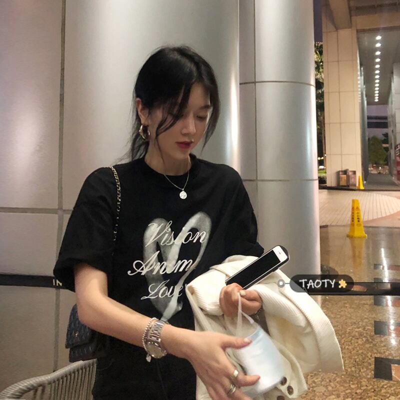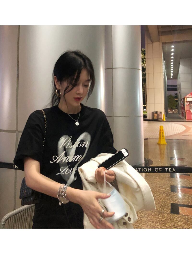 ブラックTシャツ サマールーズレッドスタイル 夏物 タオタオイ45083948397
