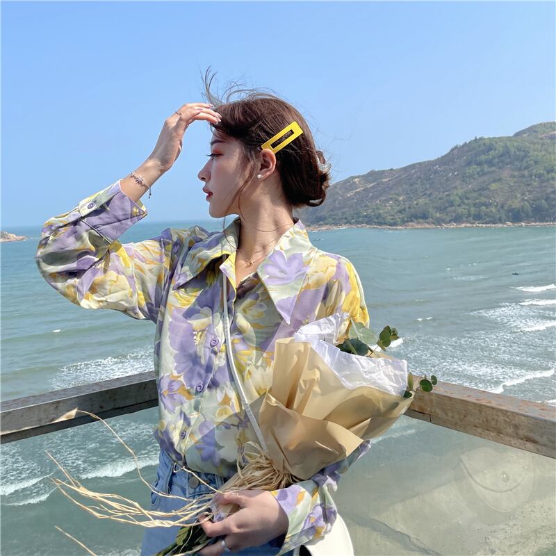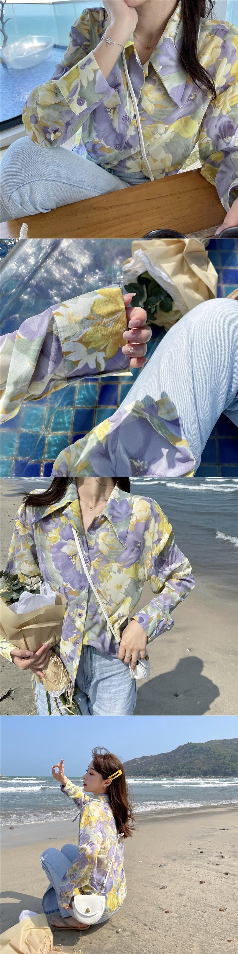フローラルシフォンシャツ レディーススタンダードスプリングオータムトップス ロング レトロ 春物 秋物 花柄 タオタオイ15077108292