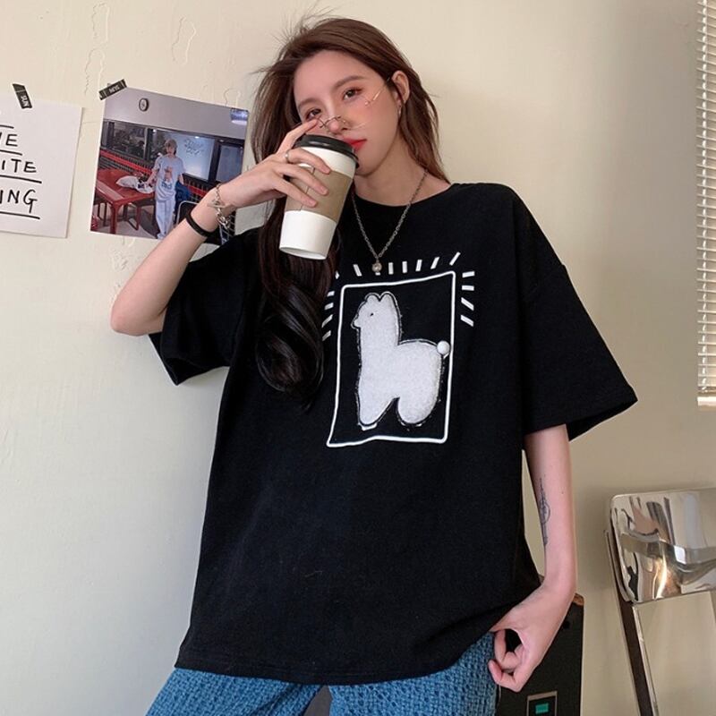 ブラックTシャツ サマースタイルルーズトップス 夏物 タオタオイ29064115452