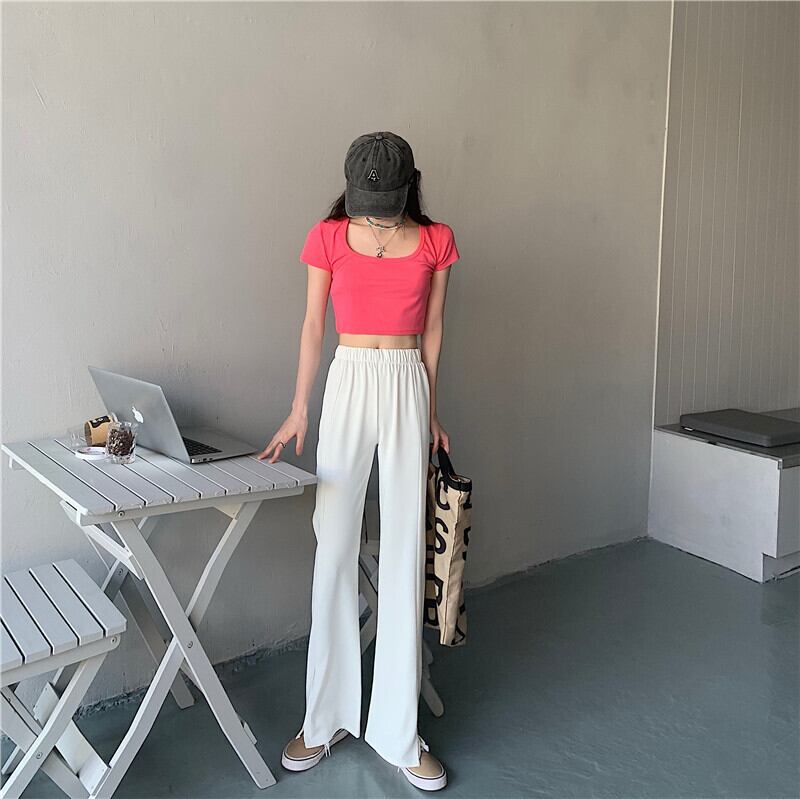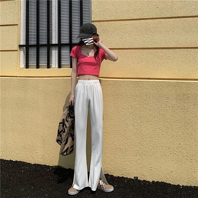 ホワイトカジュアルパンツ サマーハイウェストウェスト レッド 夏物 タオタオイ69926466633