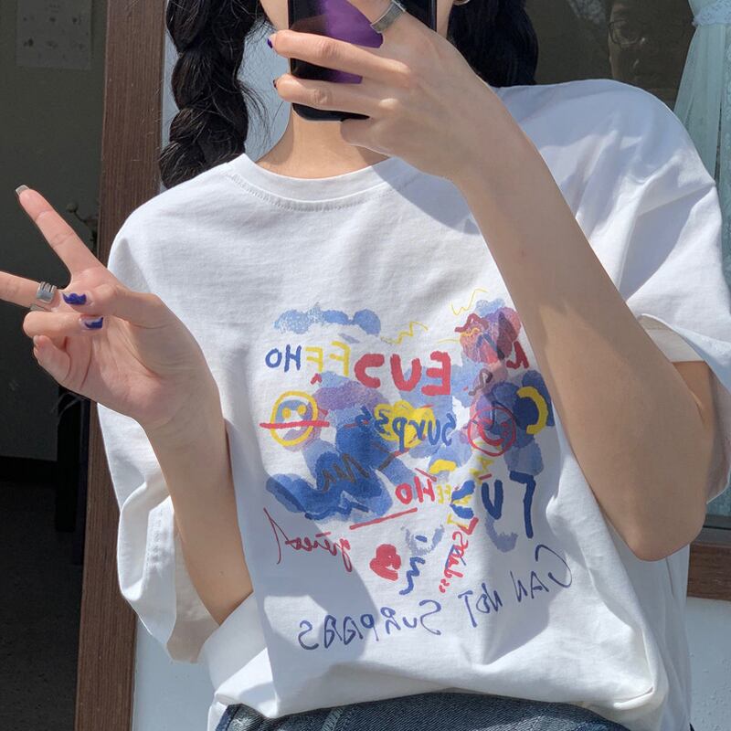 レッドホワイトTシャツ サマースタイルルーズ 夏物 タオタオイ1792917897