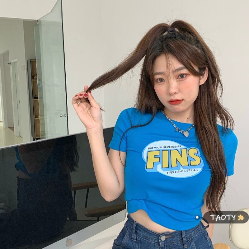 スリムショートTシャツ サマースタイルレッドトップス 夏物 タオタオイ15637930826