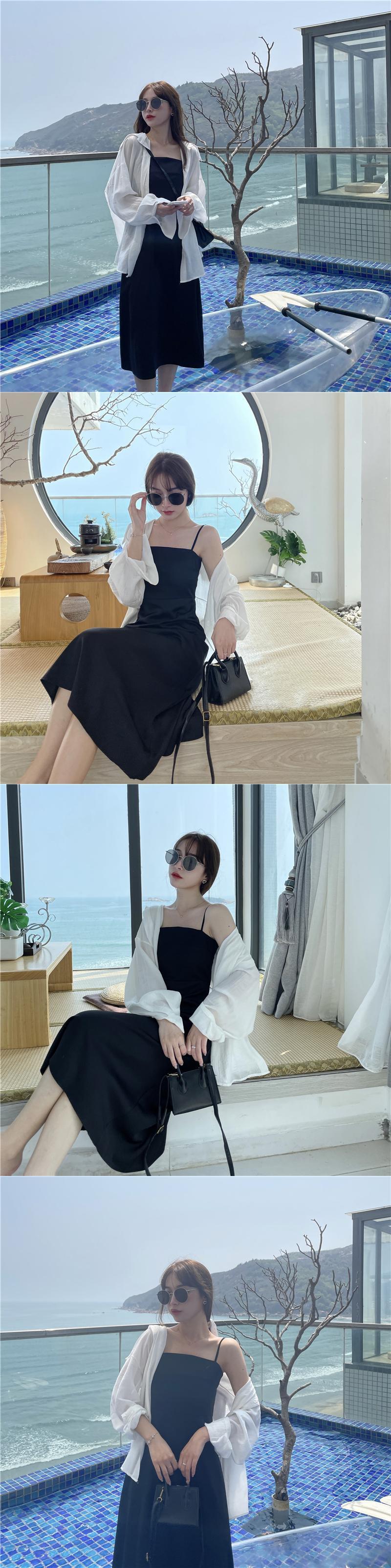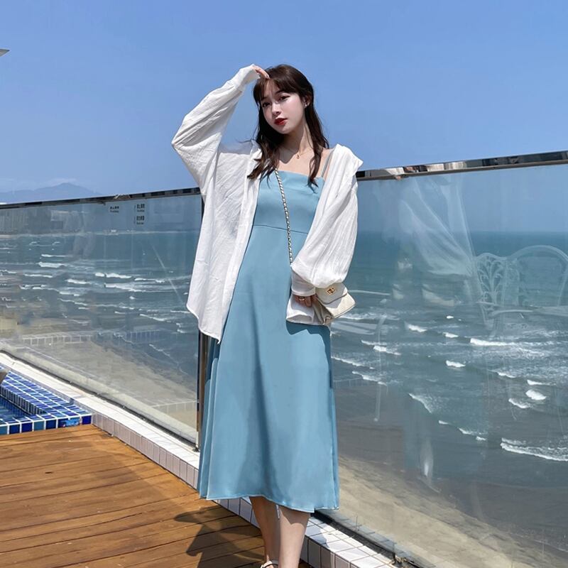 色:青いサスペンダードレスワンピース,ブラックサスペンダードレスワンピース,白いシャツのワンピース