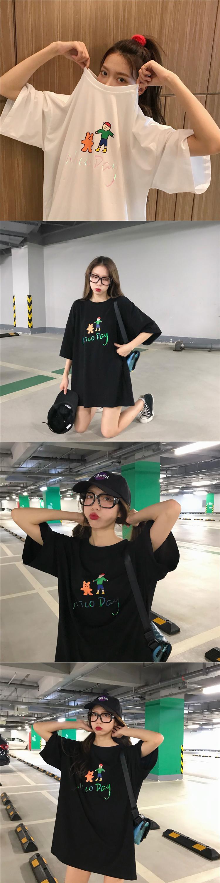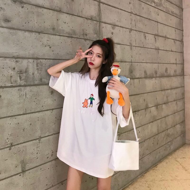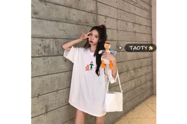 ホワイトTシャツ サマーレッドロングルーズスタイル 夏物 タオタオイ77118440128