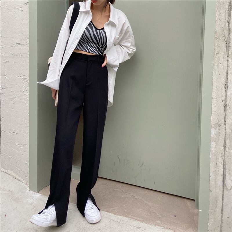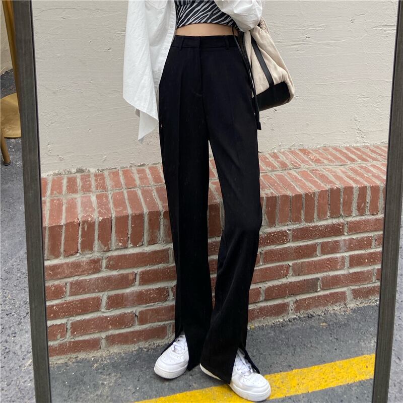 ブラックカジュアルパンツ ハイウェストウェストルーズスプリングオータム 春物 秋物 タオタオイ79089033013