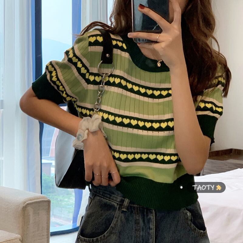 ショートニットTシャツ サマーレッドドレス 夏物 タオタオイ31424407301