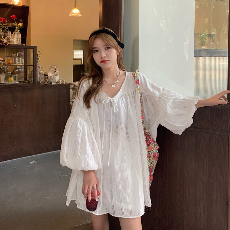 ホワイトドレス スプリングシャツ スカート スリーブ ランタンスリーブ 春物 タオタオイ95003709361