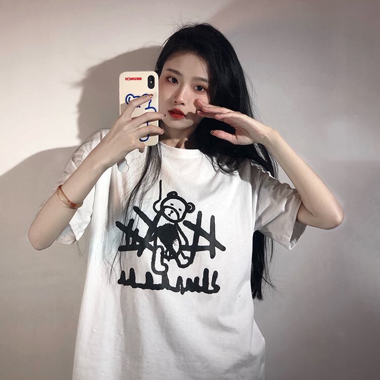色:白い落書きクマのTシャツ,黒の落書きクマTシャツ