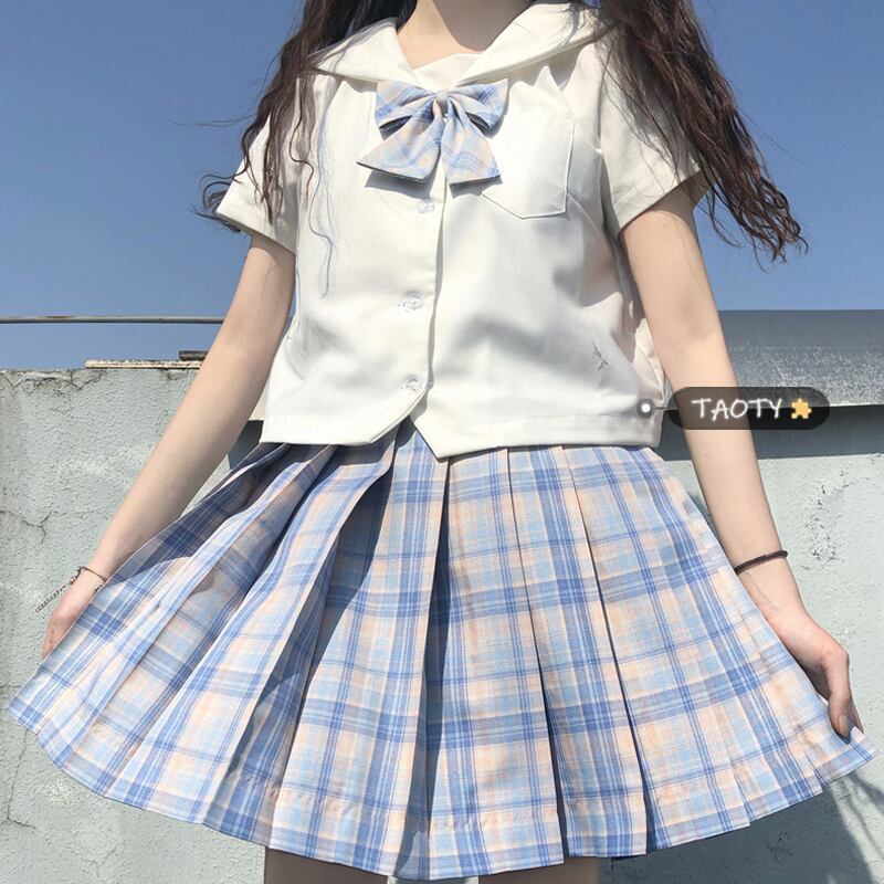 スタイルサマーホワイトシャツ 格子柄スカート 夏物 タオタオイ38221397450