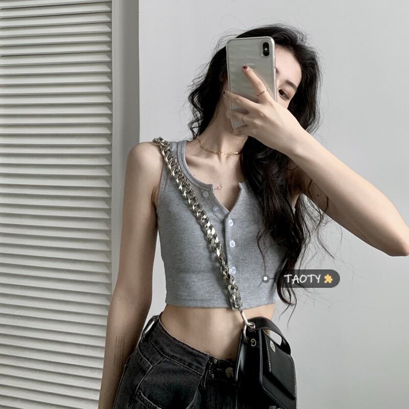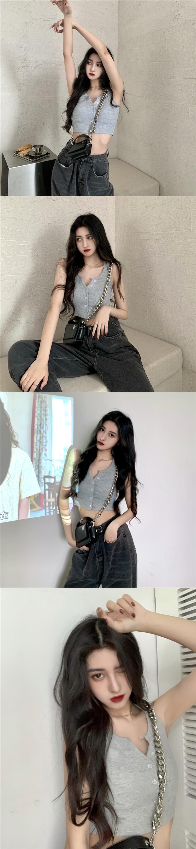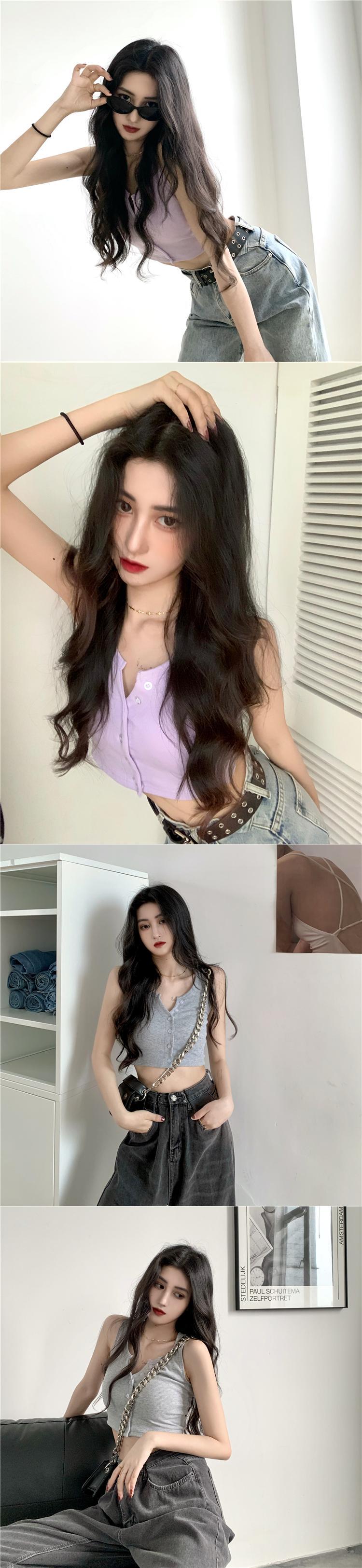 ブラックサマースタンダードノースリーブショートトップス レッド レトロ 夏物 タオタオイ2245444355