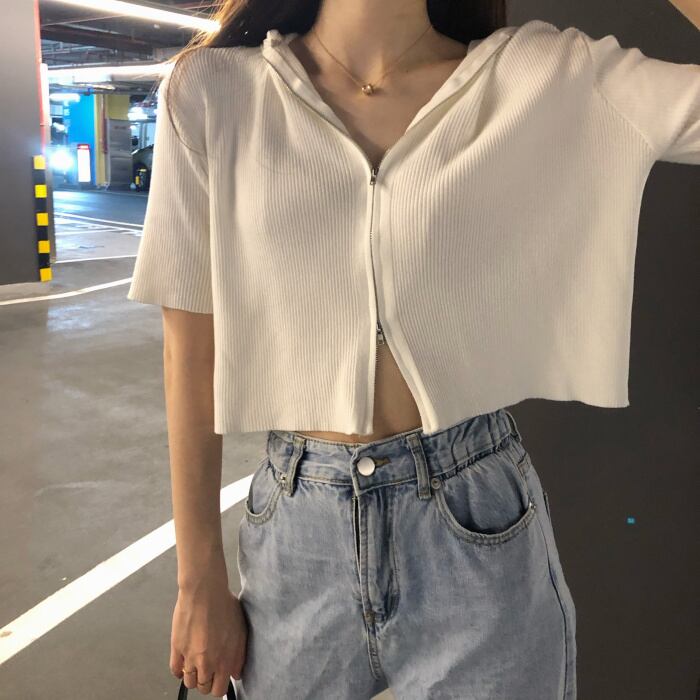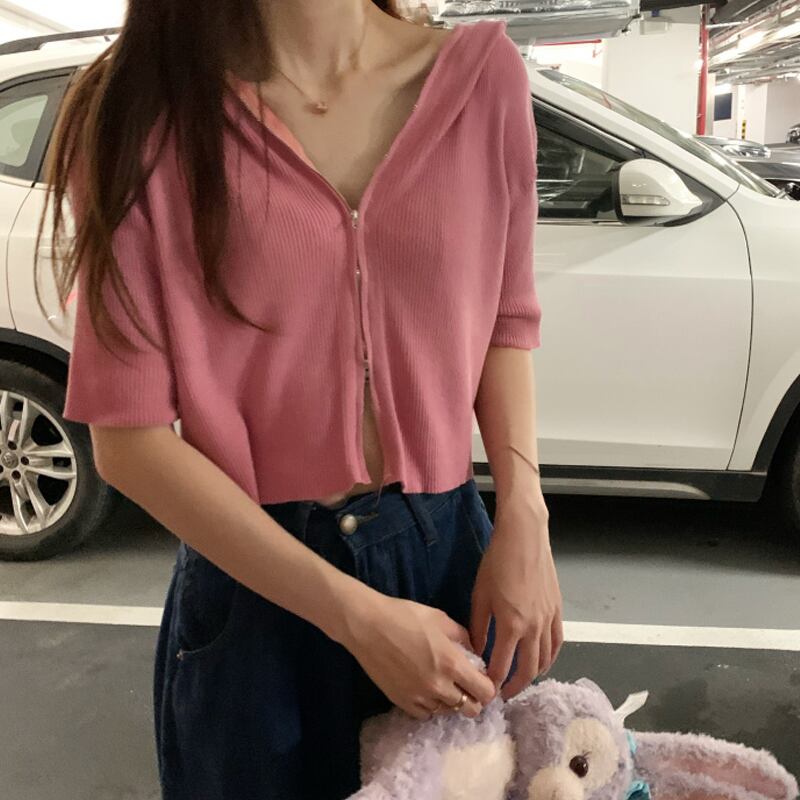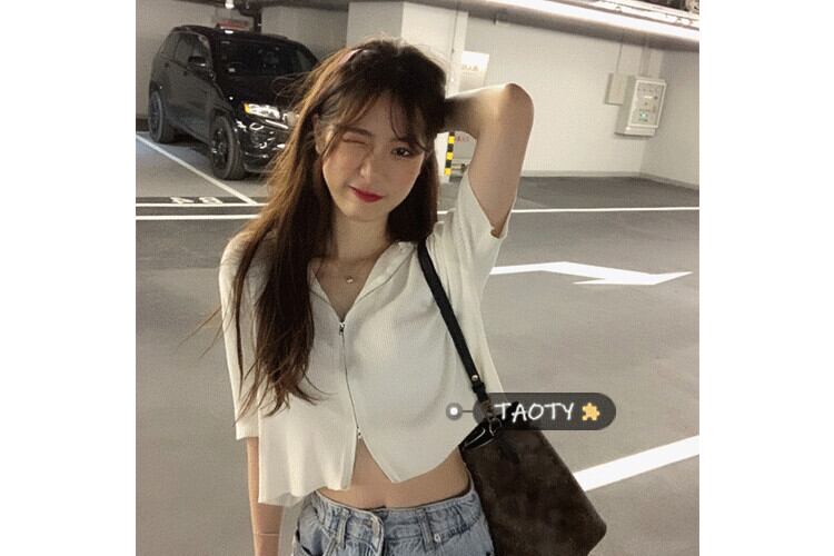 ニットショートTシャツ サマーソリッド カラートップス 夏物 ソリッドカラー タオタオイ12085000800