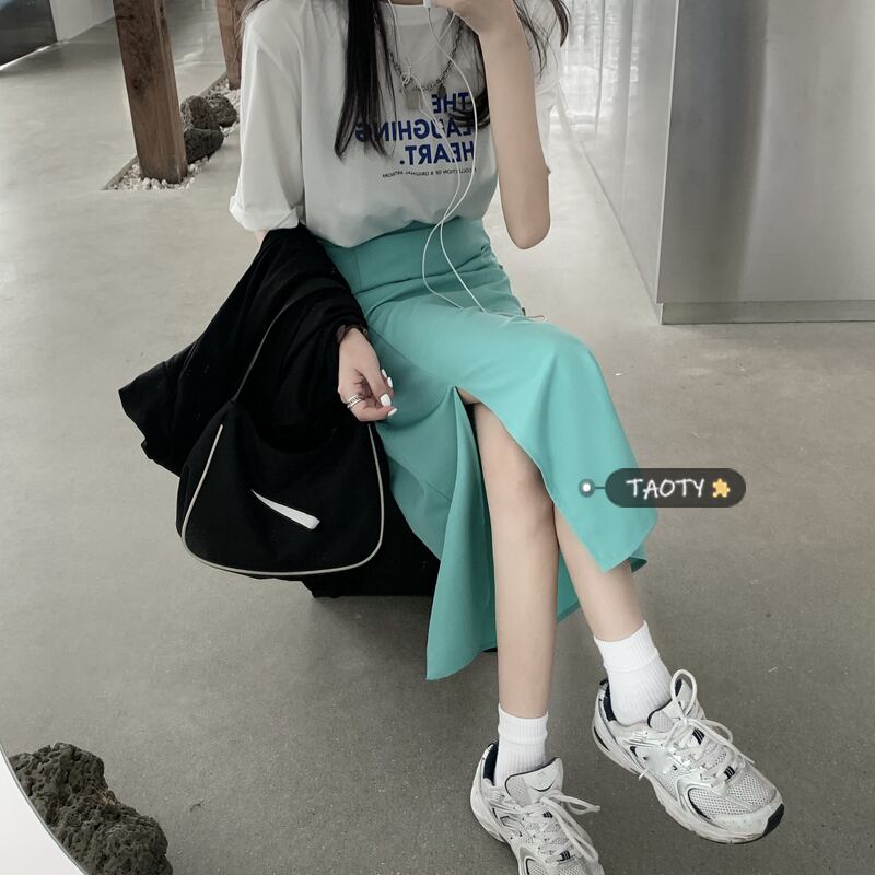 スプリングスカート ハイウェストウェストAライン 春物 タオタオイ70113447089