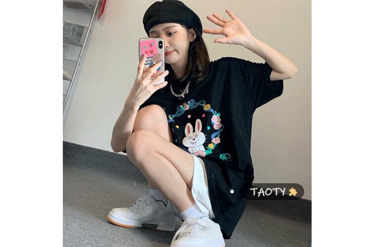 レッドホワイトTシャツ サマースタイルルーズ かわいい 夏物 タオタオイ54739170841