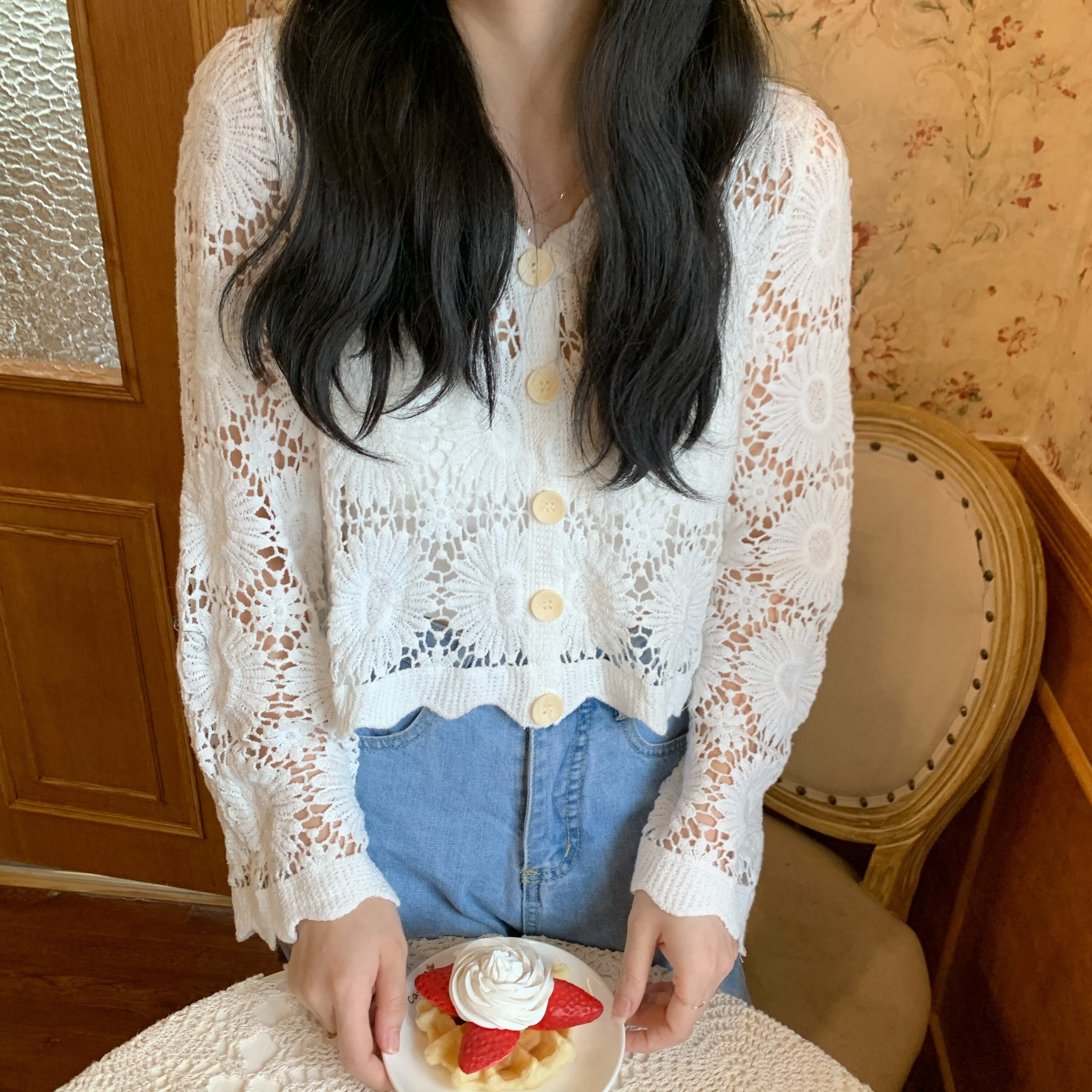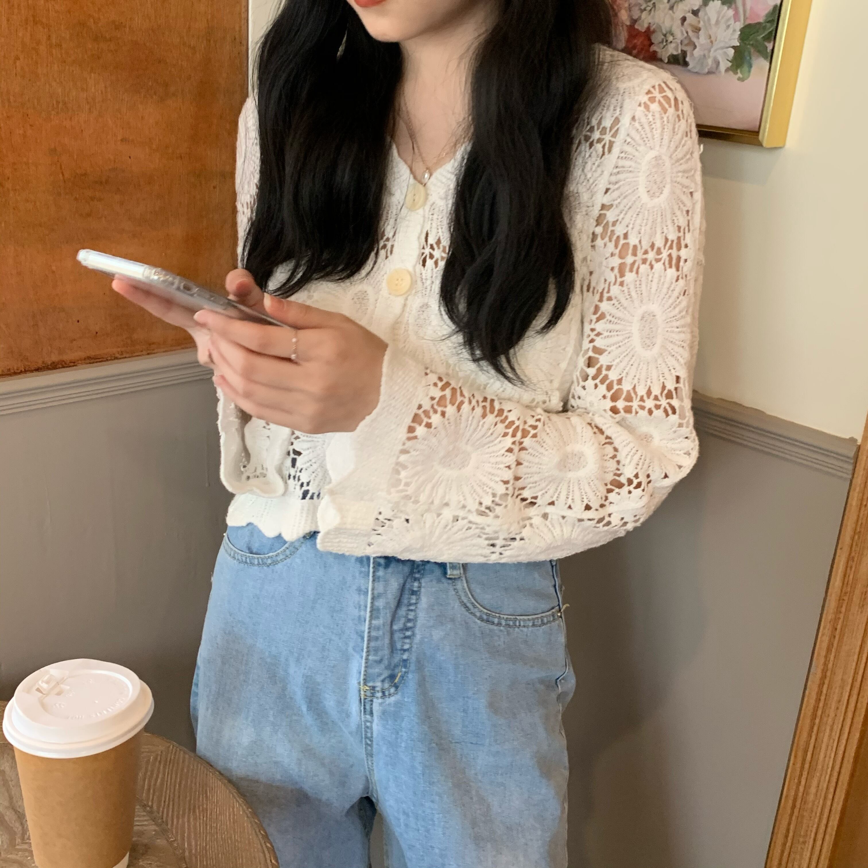 スプリングスタイルレースブラウス レディースVネックショート レッド 刺繍 春物 タオタオイ24032302021