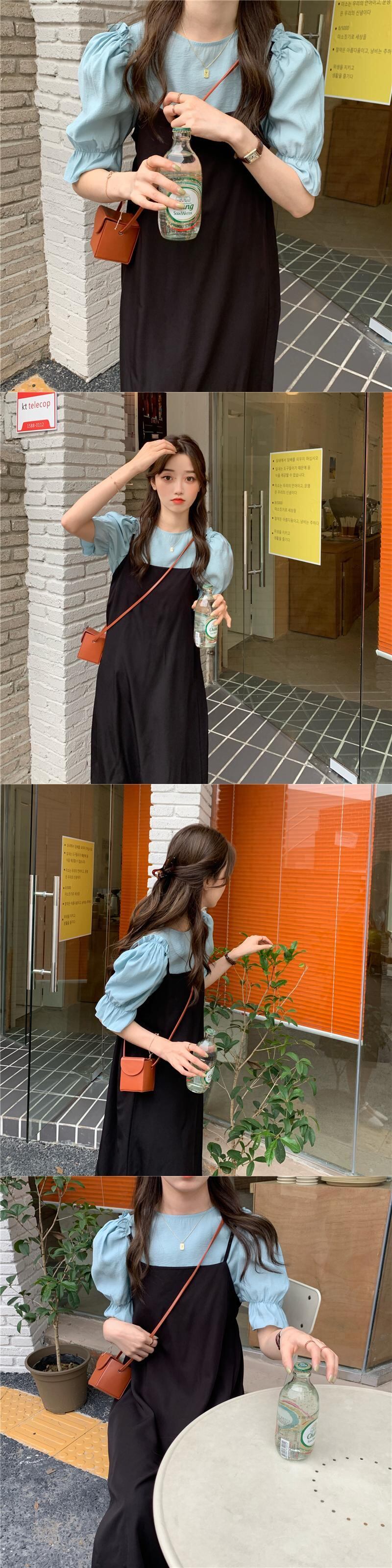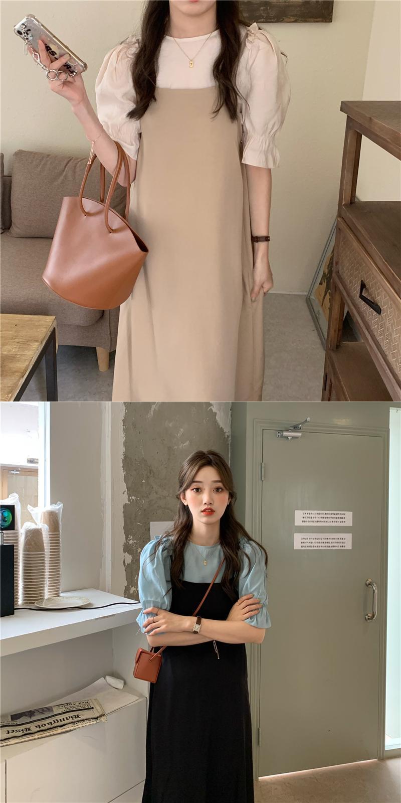 色:ワンピースアプリコットトップ,ブルートップシングルピース,カーキ色のスカート,黒スカートワンピース