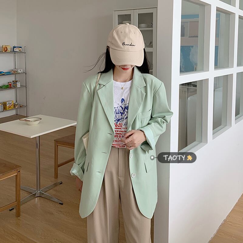 グリーンジャケット スプリングスタイルレッドカジュアル 春物 タオタオイ91460135845
