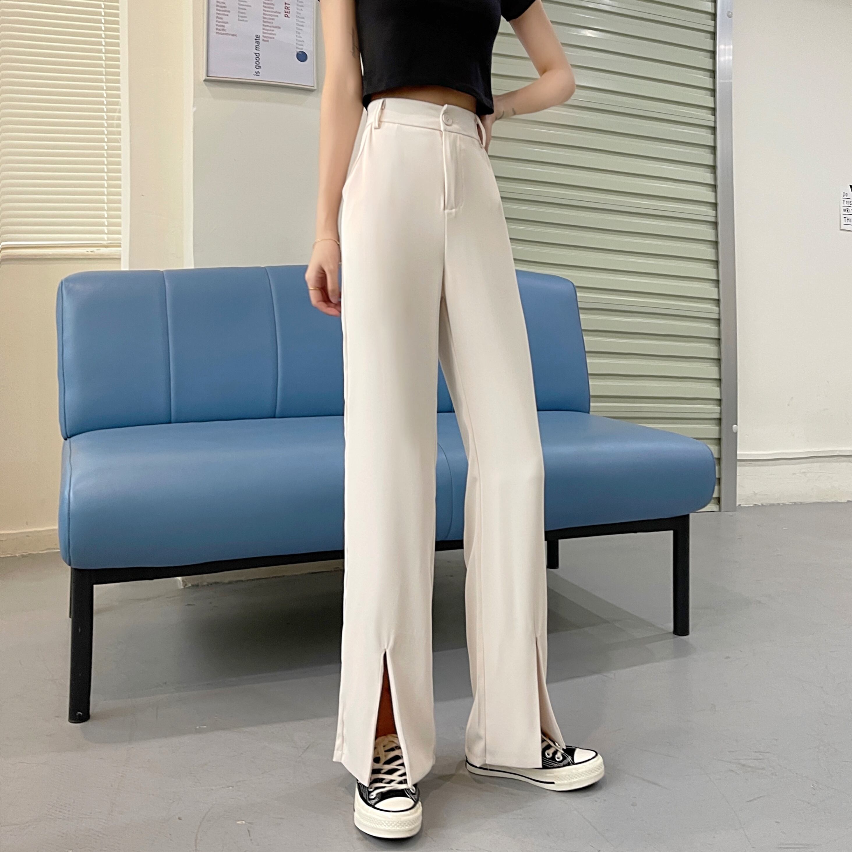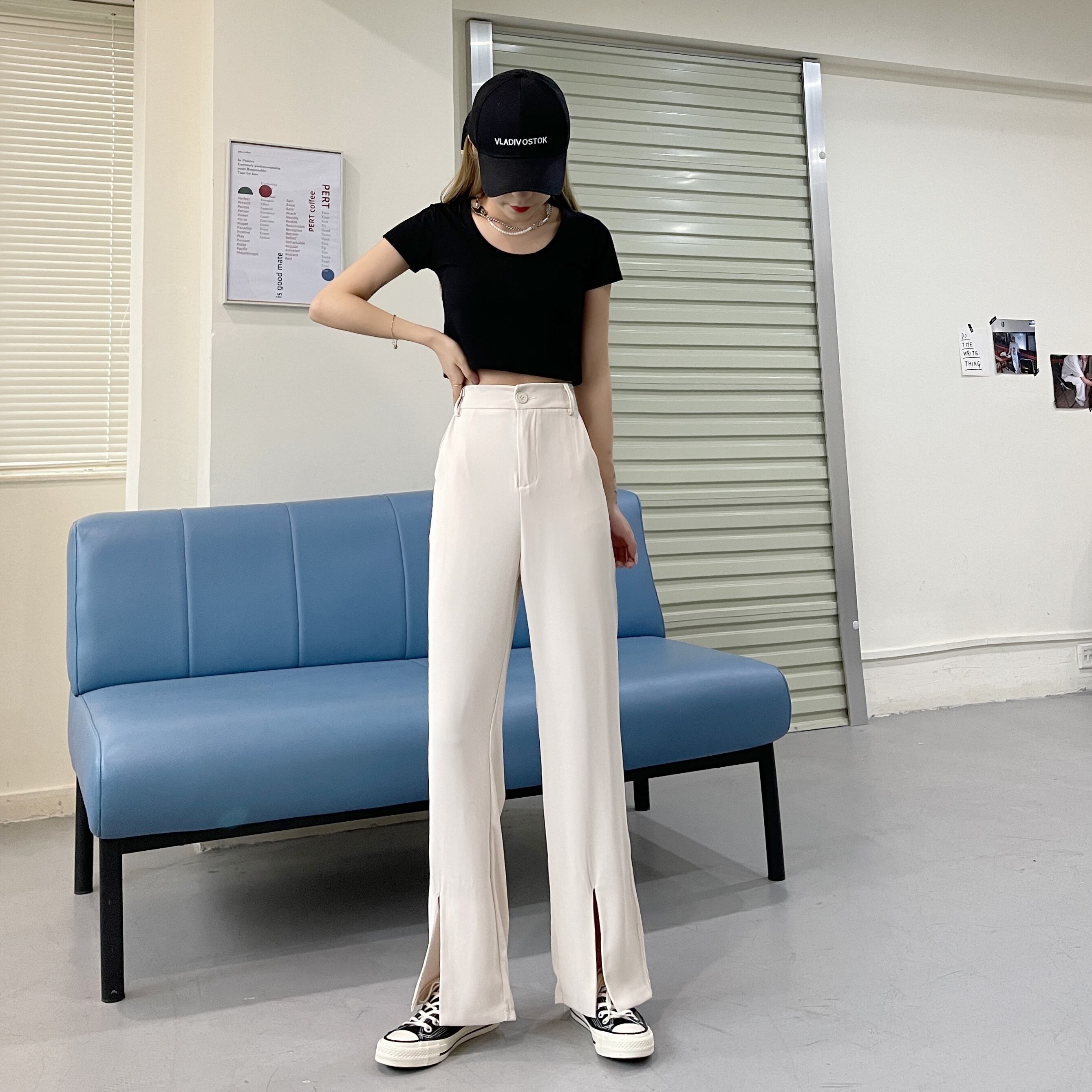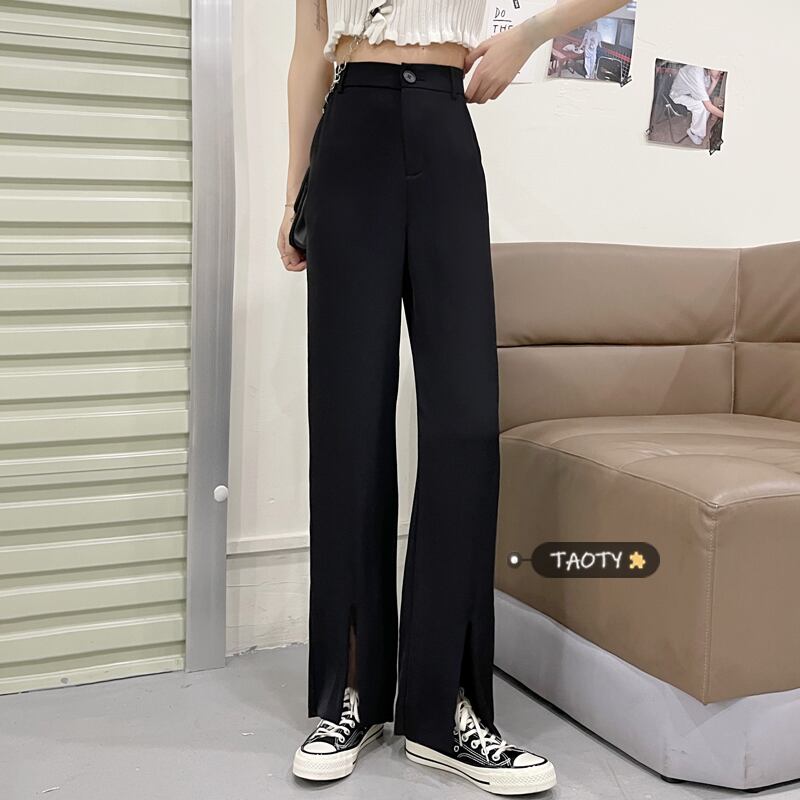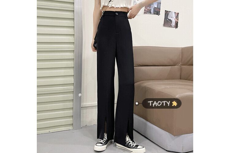 スリットカジュアルパンツ スプリングオータムハイウェストウェストルーズ薄手 春物 秋物 タオタオイ38395551850