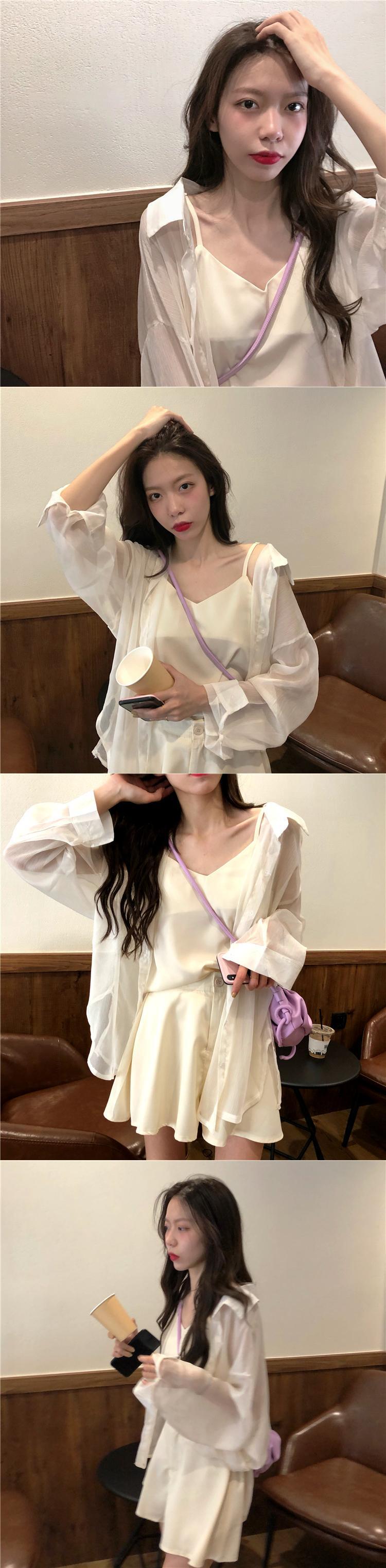 薄手シャツ レディーススタンダードスタイルサマートップス ロング レトロ 夏物 タオタオイ74271827382