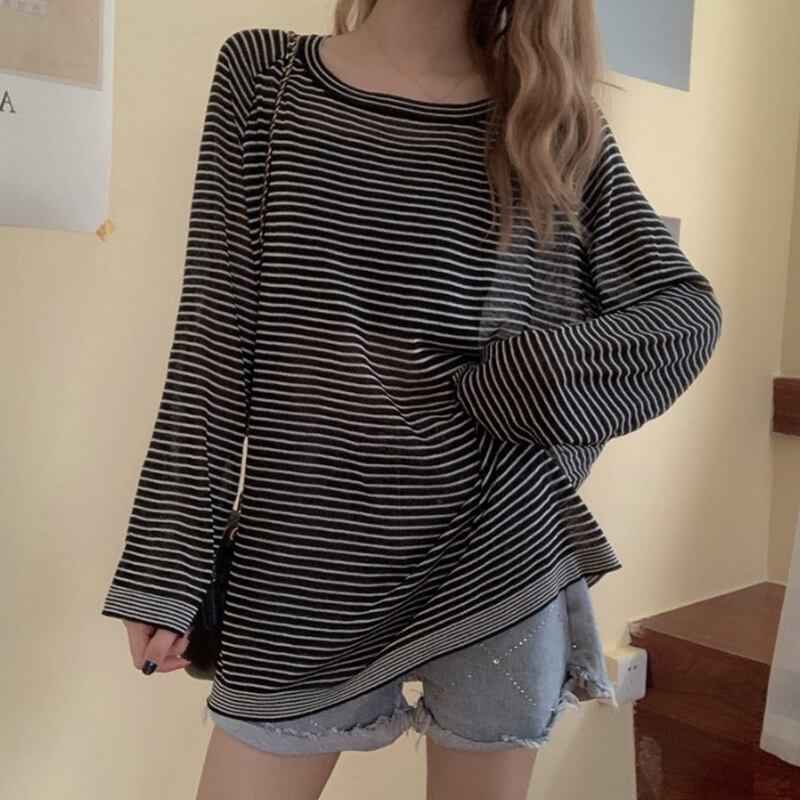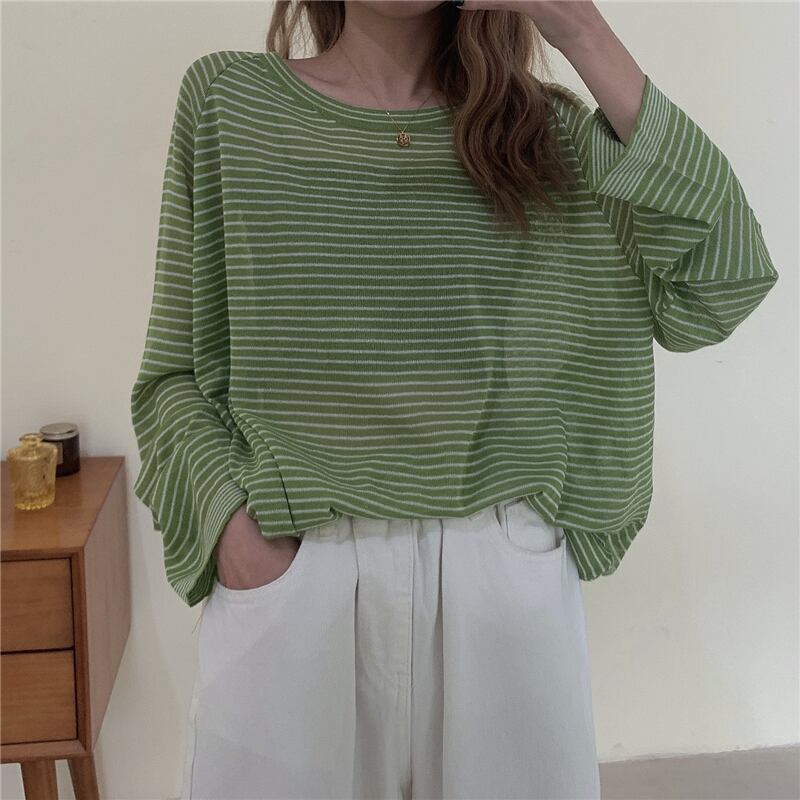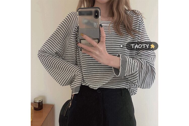 薄手ストライプニットTシャツ サマールーズ ロング 夏物 タオタオイ94207338227