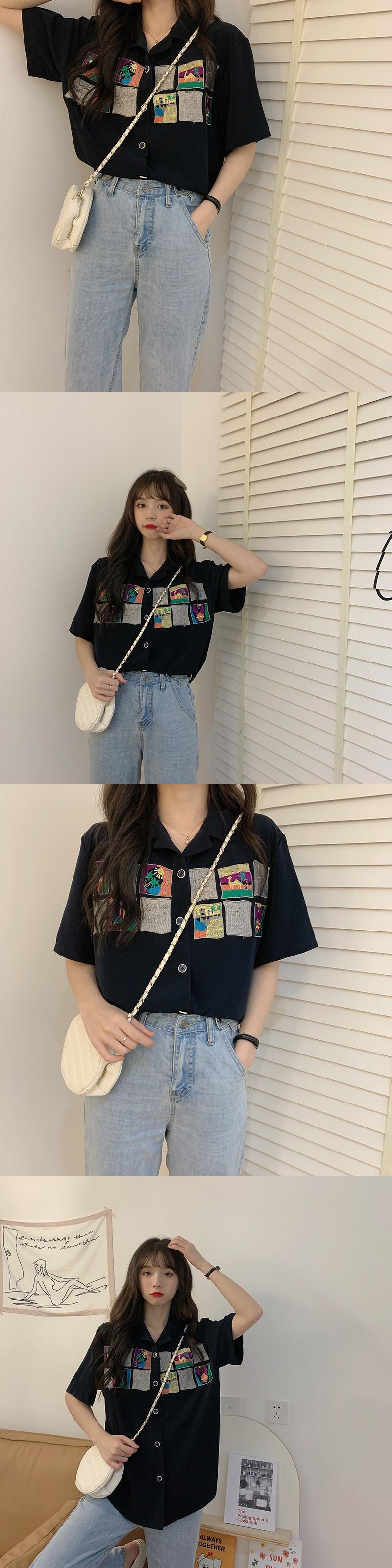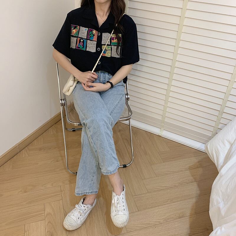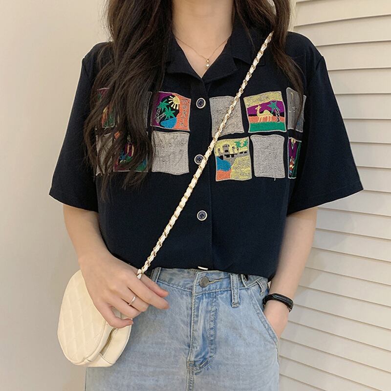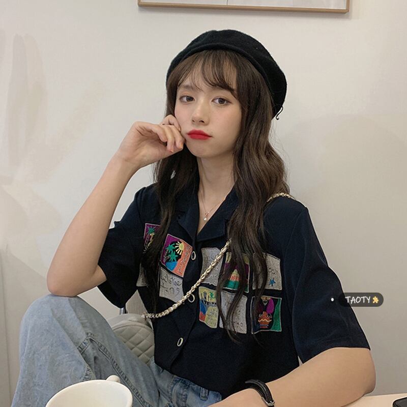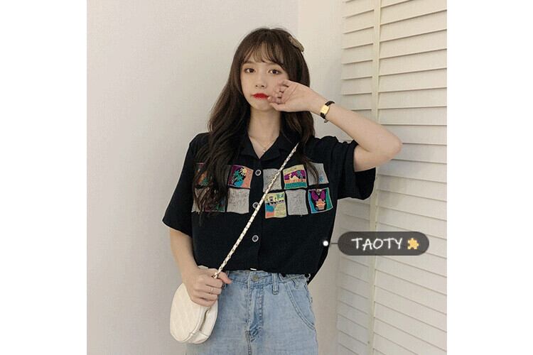 ブラックシャツ スタンダードカラースタイルトップス レトロ タオタオイ67784436204